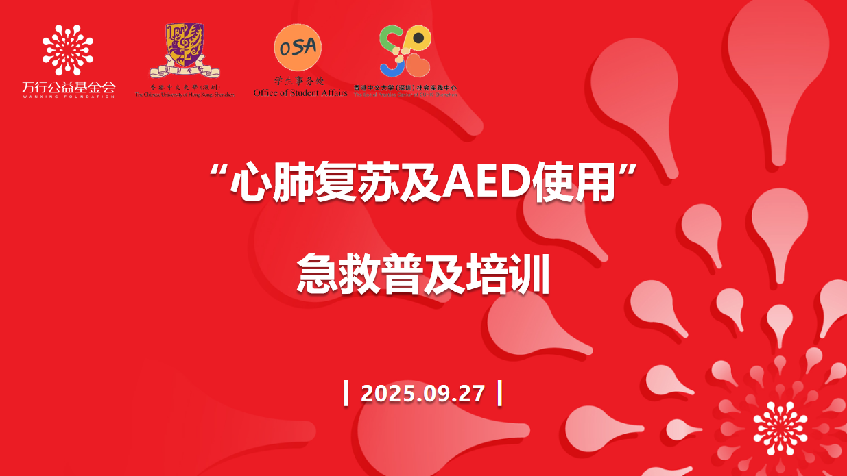 急救知识是守护生命的 “第一道防线”,普及急救技能更是公益组织践行社会责任的重要使命。2025 年 9 月 27 日(周六)14:00-17:00,深圳市万行公益基金会联合深圳市公益救援队和深圳市急救中心,在香港中文大学(深圳)学生中心 301 成功举办初级救护员培训活动。百余名学子积极参与,在专业指导下系统学习急救知识与 AED 设备操作,现场反响热烈,收获校方师生的一致好评。