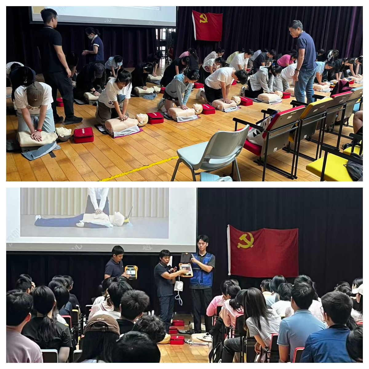 培训课程聚焦 “理论 + 实操” 双维度,内容涵盖心肺复苏(CPR)基础原理、创伤止血包扎技巧、常见意外应急处理等核心模块,尤其针对 AED(自动体外除颤仪)的使用方法进行了重点讲解与实操演练。授课讲师结合真实案例,用通俗易懂的语言拆解专业知识,同时通过分组模拟操作,让每一位学子都能亲身体验急救流程,切实掌握实用技能。