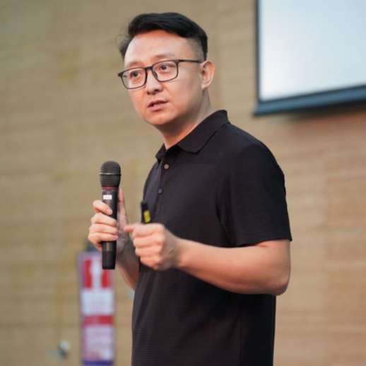 第一个上台的是向宠,人称大象。 从上海专程赶来。2006年进万科,一名产品经理,2015年创业,成立了国内最早的装配式装修企业-品宅装饰科技,他形象的描述他公司的业务:"用拼乐高的方式做装修"行业下行,他果断做减法,从 18 个产品精简到 5 个。目的就是活下来。他的产品为社会减碳40%,为客户降本增效40%他用马拉松来陪跑创业,继续向前!